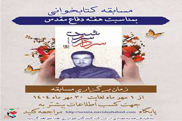 برگزاری مسابقه فرهنگی کتابخوانی از کتاب زندگی نامه شهید معظم حمید آذین پور تحت عنوان «سردار سردشت» به مناسبت هفته دفاع مقدس بنیاد شهید و امور ایثارگران استان آذربایجان غربی در بستر سایت نوید شاهد به آدرس: